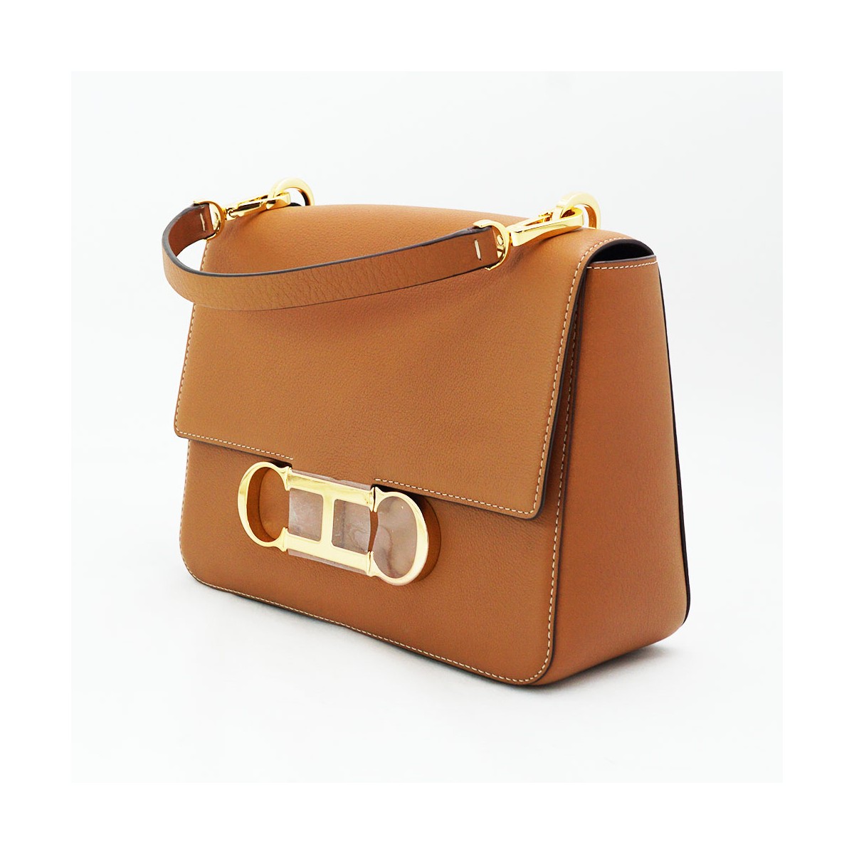 Bossa de mà Carolina Herrera Insígnia Satchel M Ref: E351912. Estat: NOU A ESTRENAR, NO PRECINTAT. Bossa de mà Carolina Herrera Insígnia Satchel M en pell Mocán color camel, de gra subtil i regular. Adornat amb un braçalet del 35 Aniversari de la Marca transformat en un distingit tancament. Detalls metàl·lics daurats. Amb 2 butxaques (1 extern). Inclou dustbag i 2 anses extraïbles de pell, una de mà i una altra regulable d'espatlla. Mesures: 23cm L x 17cm A x 9cm B. Inclou dustbag.